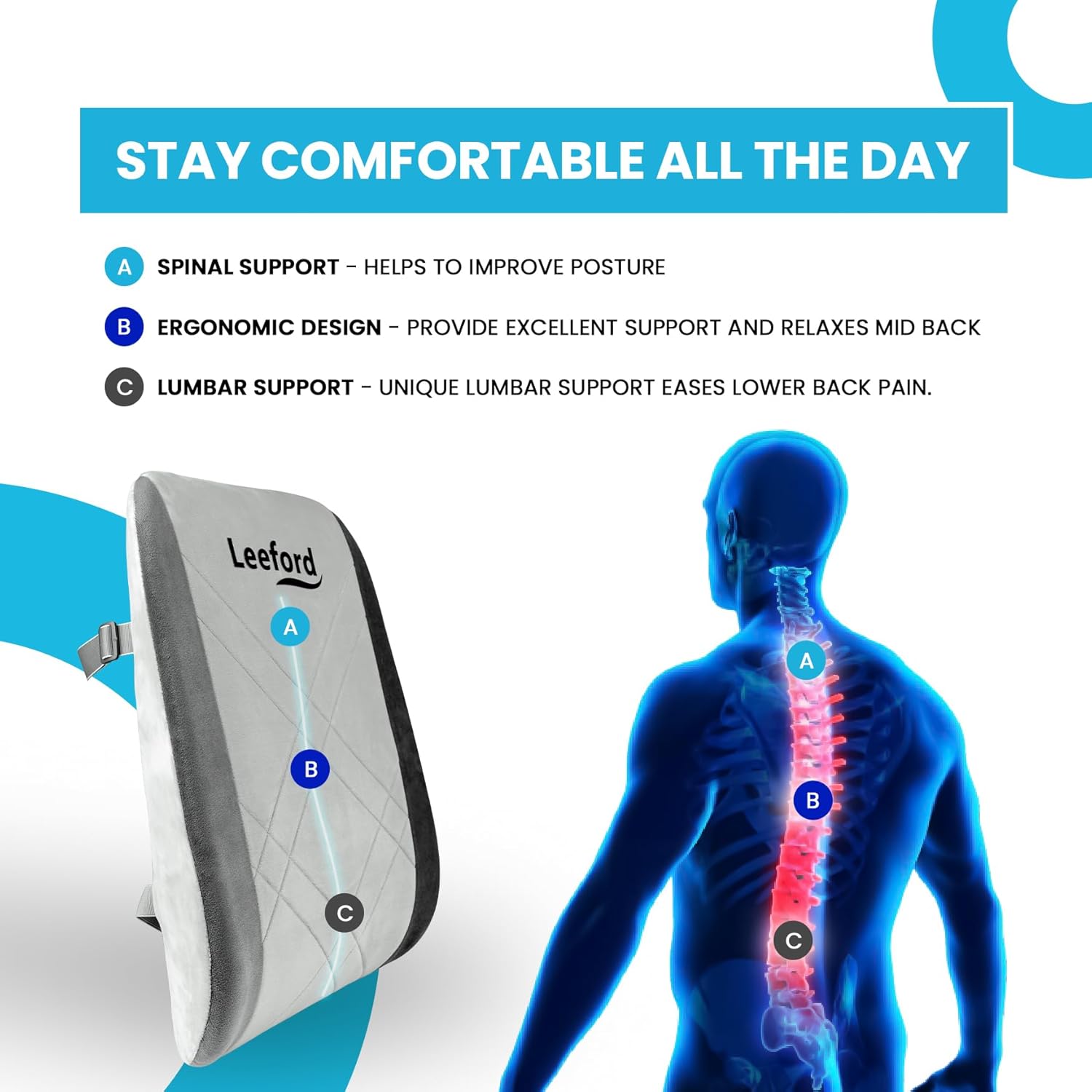 Leeford Back Rest Support – Chair Back Rest Support For Office, Car, Bed– High-Quality Foam, Breathable Fabric, Improves Posture, And Reduces Back Pain