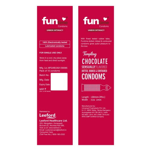 Leeford Funtime Juicy Cherry Flavored Lubricated Dotted,Ribbed And Contoured Condom 10 Count
