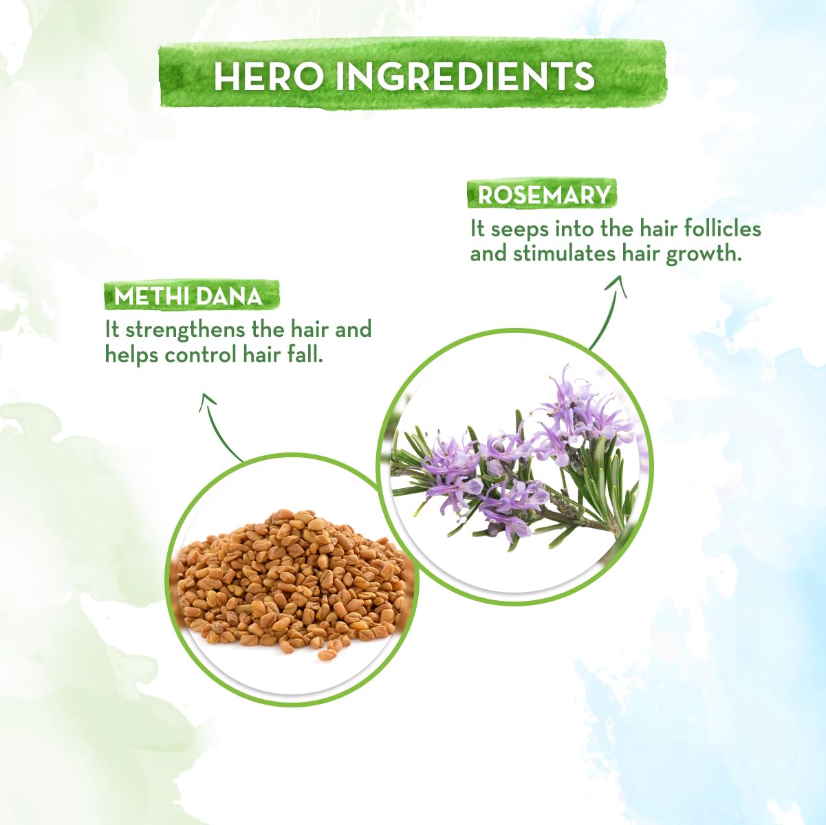 Crafted with the natural goodness of Rosemary, a super potent herb, this combo helps stimulate new hair growth. It is also infused with Methi Dana - a time-tested ingredient that helps control hair fall.