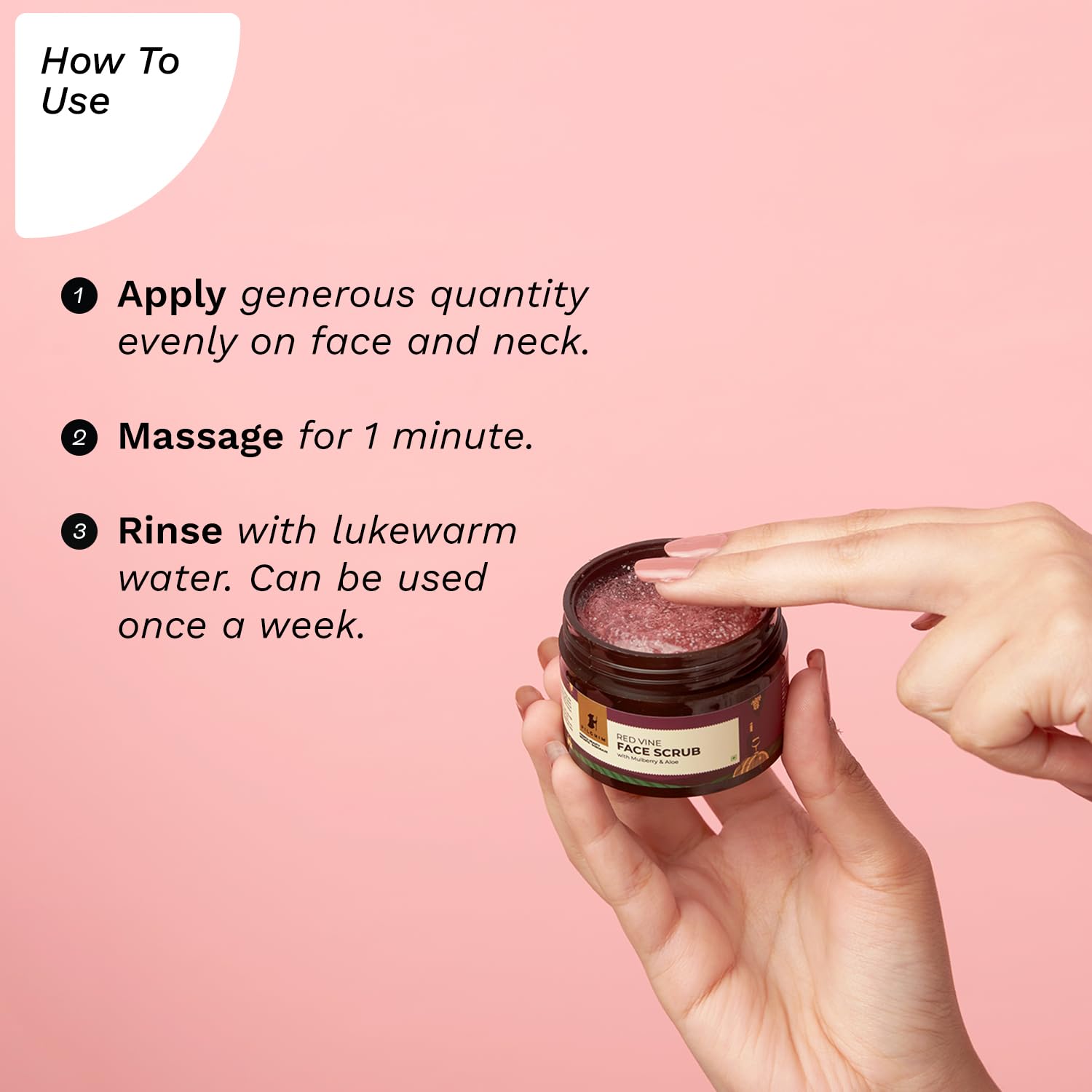 Apply scrub on clean, damp skin (face and neck).
