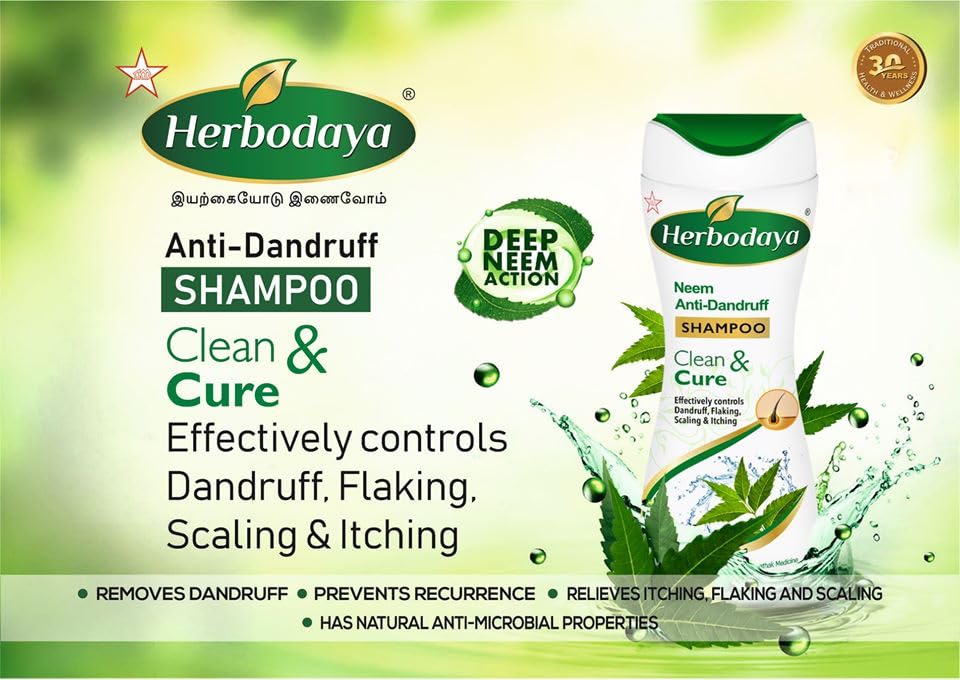 Herbodaya Neem Anti-Dandruff Shampoo, crafted by SKM Siddha and Ayurveda Company, is an Ayurvedic solution designed to combat dandruff and promote scalp health.