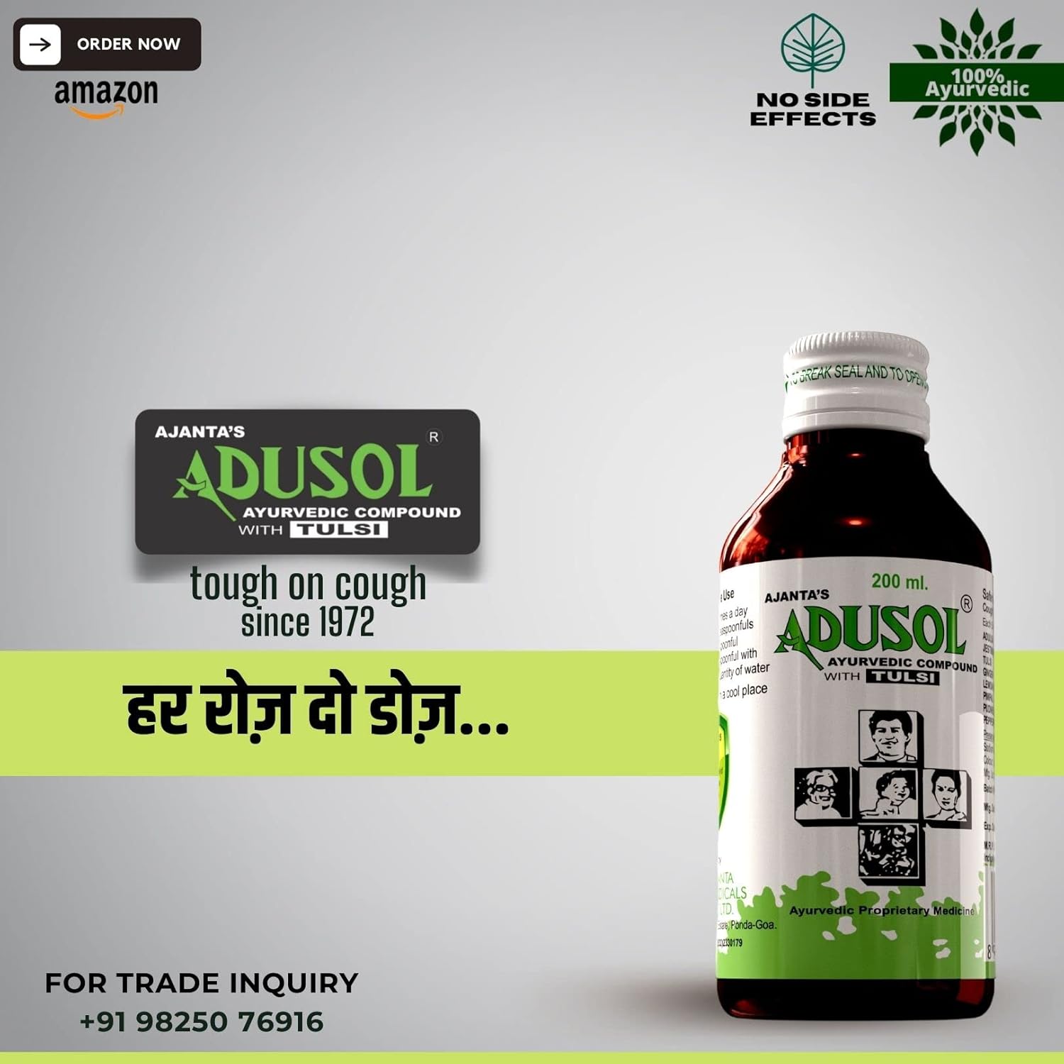 AJANTA'S ADUSOL Ayurvedischer Tulsi-Hustensaft beugt kaltem, nassem und trockenem Husten vor | Gut für Kinder und Erwachsene | Khansi Ki Dava | Bestes Hustenlinderungsprodukt | Adulsa-Honigsirup | Nützlich bei Halsreizungen, 200-ml-Packung