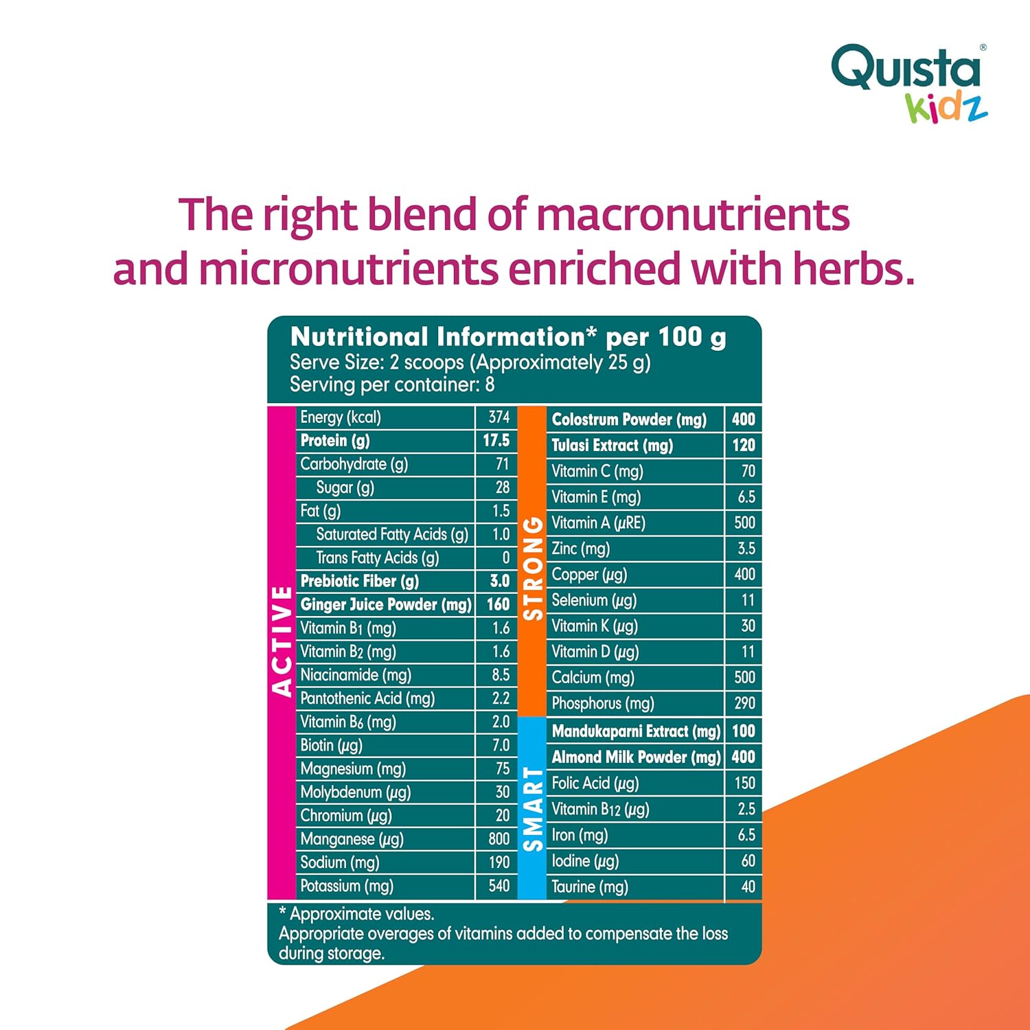 Die prägenden Jahre eines Kindes sind entscheidend für die schnelle Entwicklung in seinen körperlichen, kognitiven und sozioemotionalen Bereichen. Quista Kidz bietet einen ganzheitlichen Ansatz, um wichtige Meilensteine im Leben Ihres Kindes zu erreichen. Dieses wissenschaftlich erforschte Nahrungsergänzungsmittel ist eine Mischung aus traditionellen Zutaten und lebenswichtigen Nährstoffen, die die allgemeine Entwicklung und das Wohlbefinden Ihres Kindes unterstützen.