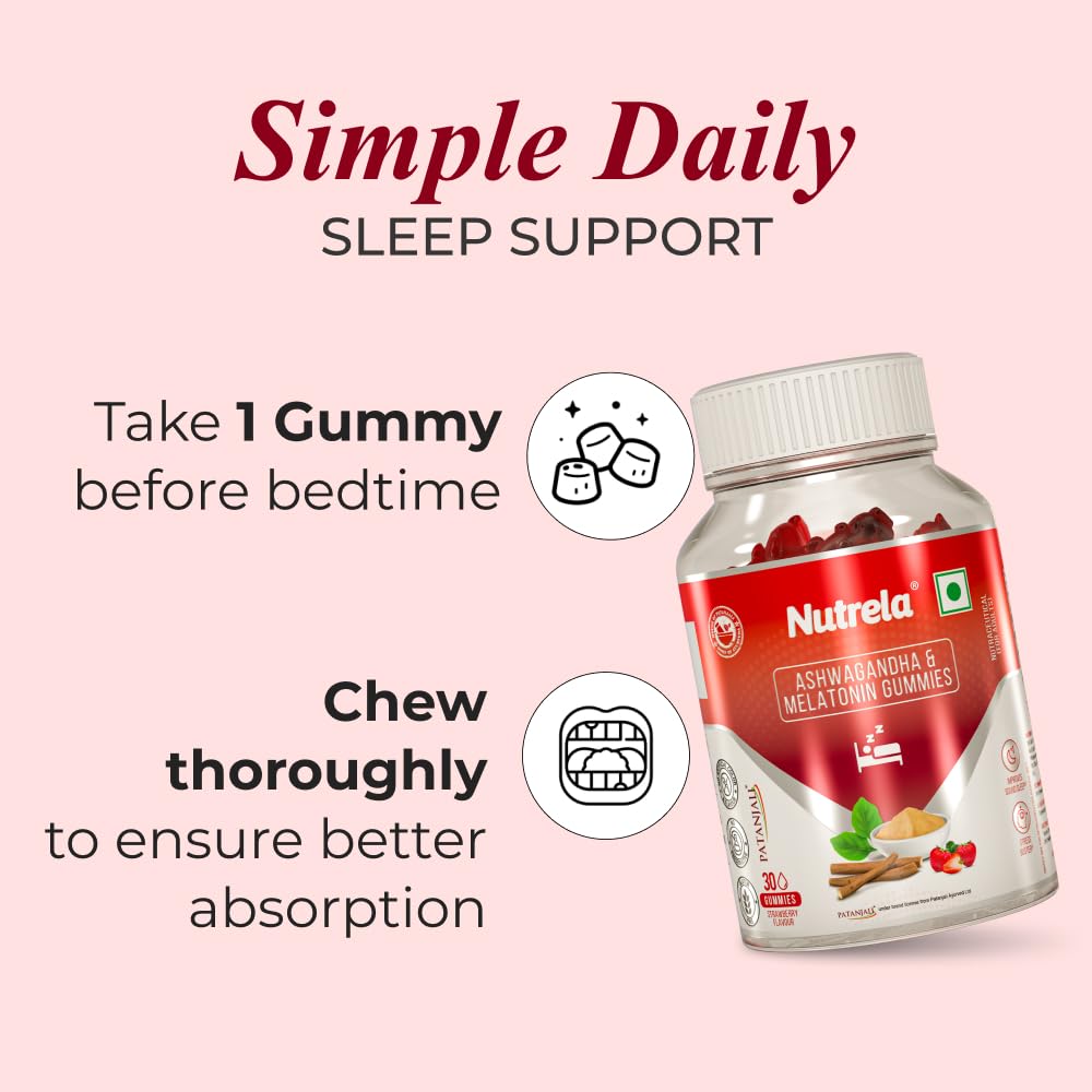 Patanjali Nutrela Ashwagandha & Melatonin Gummibärchen mit Mischgeschmack 90g