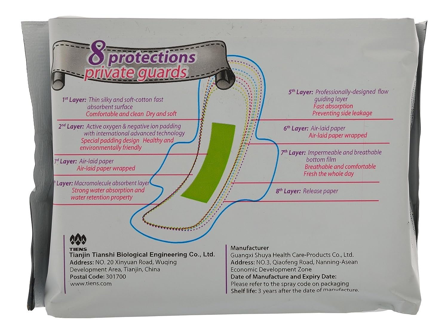 Negative ion padding- it emits a very high number of beneficial negative ions which works naturally to relieve many menstrual discomforts. It increases energy, enhances immunity, relieves tension, reduces irritation, removes unpleasant odors, regulates and lessen heavy periods and kills bacteria causing infections. Product usage For women during menstruation contains pads/package Protection throughout the night An ultra-thin design with super water absorption and water retention property can make you comfortable and clean