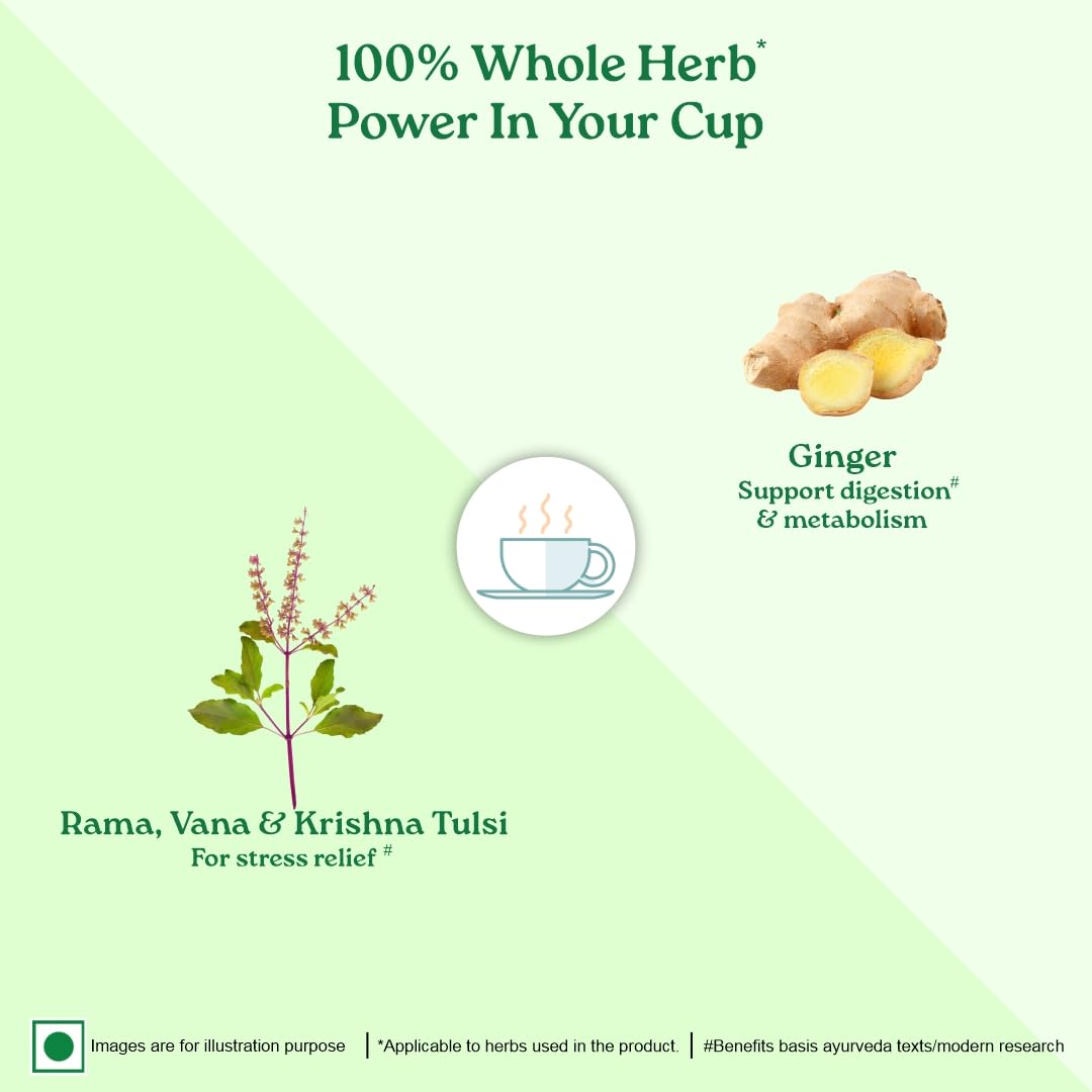 • Ingredients: A blend of three types of Tulsi—Rama, Krishna, and Vana—along with Ginger.
