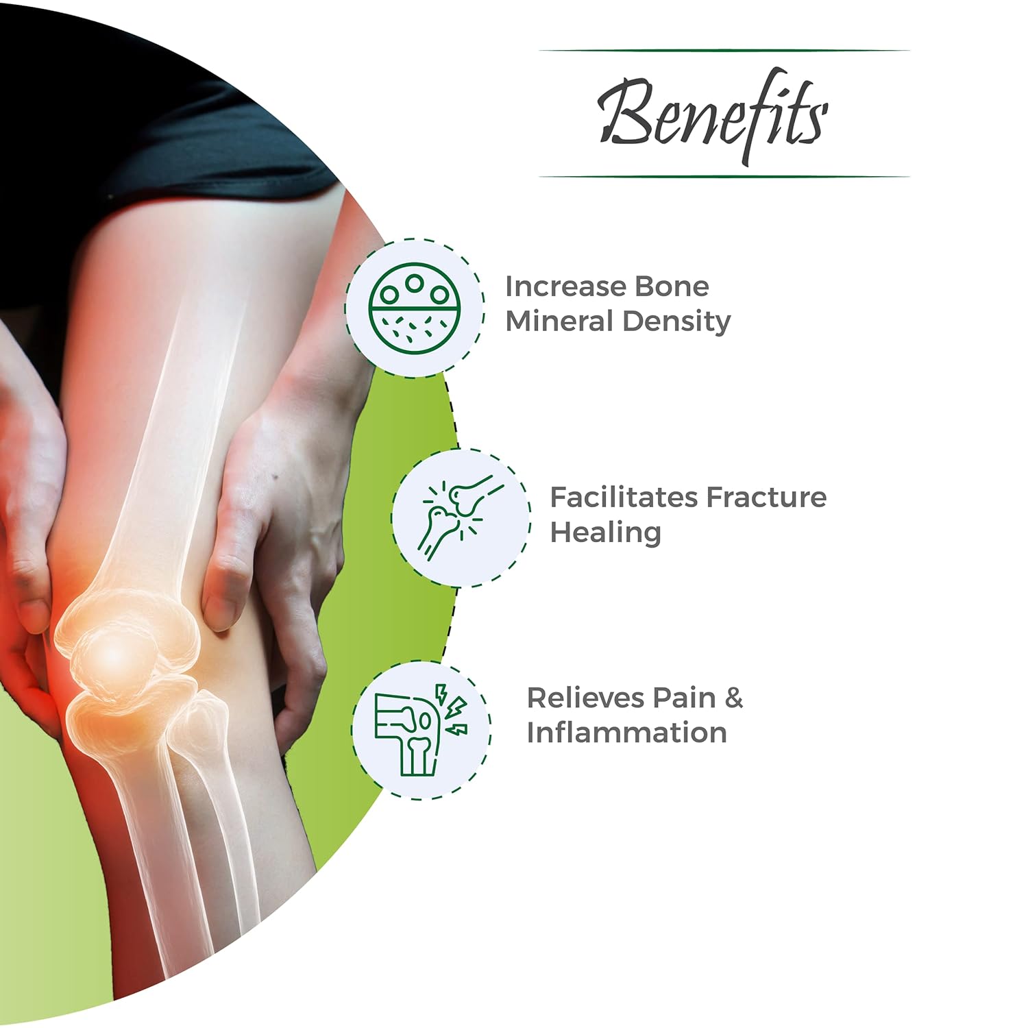 Its main content is hadjod (cissus quadrangularis). Hadjod helps activate the osteoblast cells in the bones, which helps increase calcium uptake
