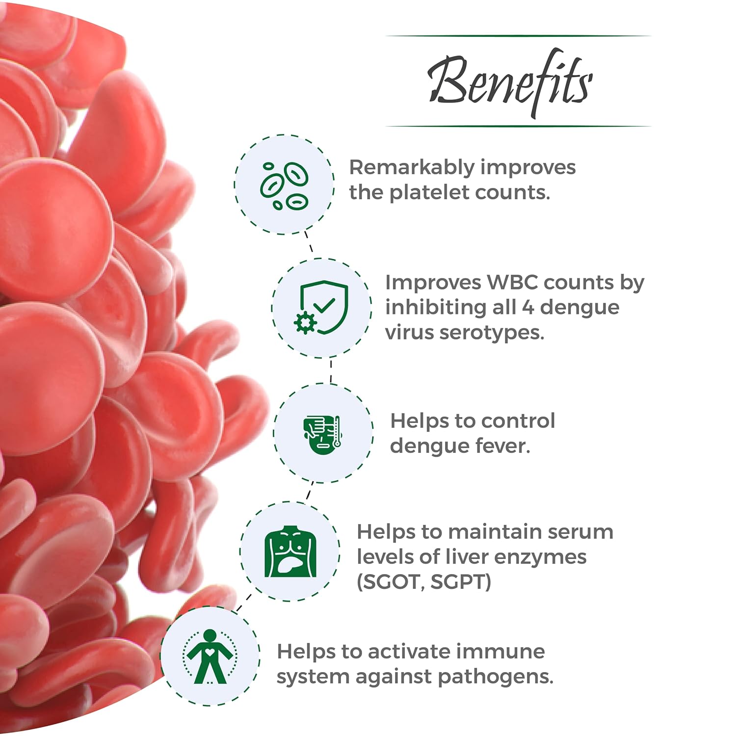 It helps manage thrombocytopenia due to dengue, malaria, liver disorder, chemotherapy, etc.