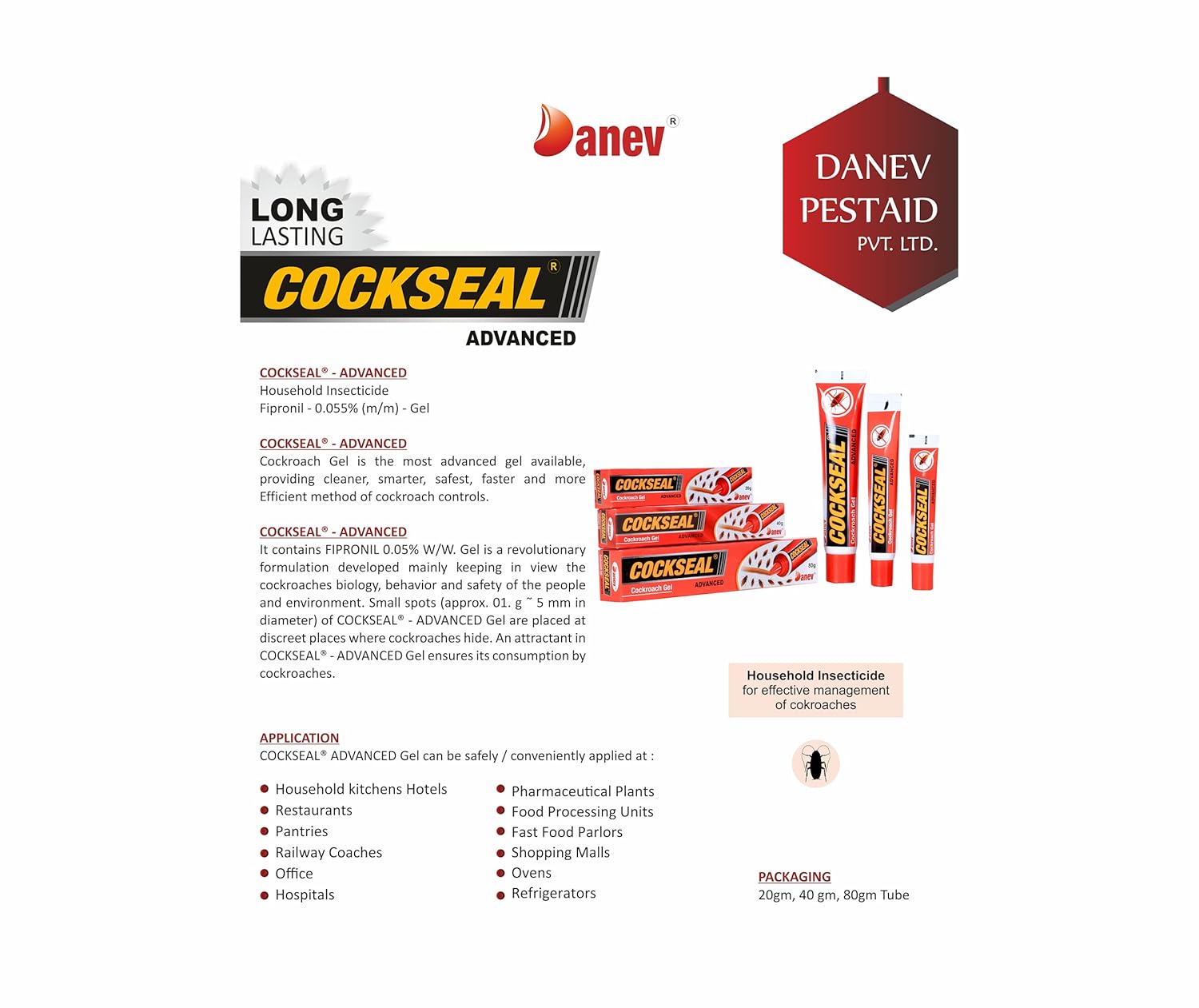 10 X Danev Cockseal Advanced Cockroach Insects Tube Gel