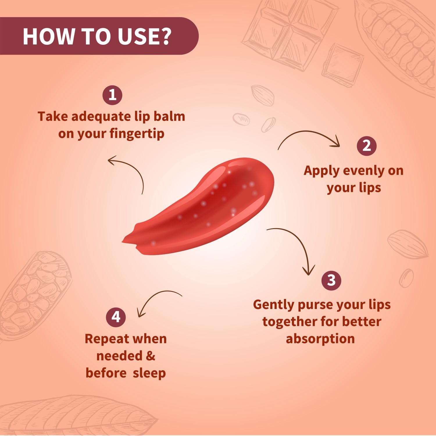 Apply a small amount of the lip balm to your lips.