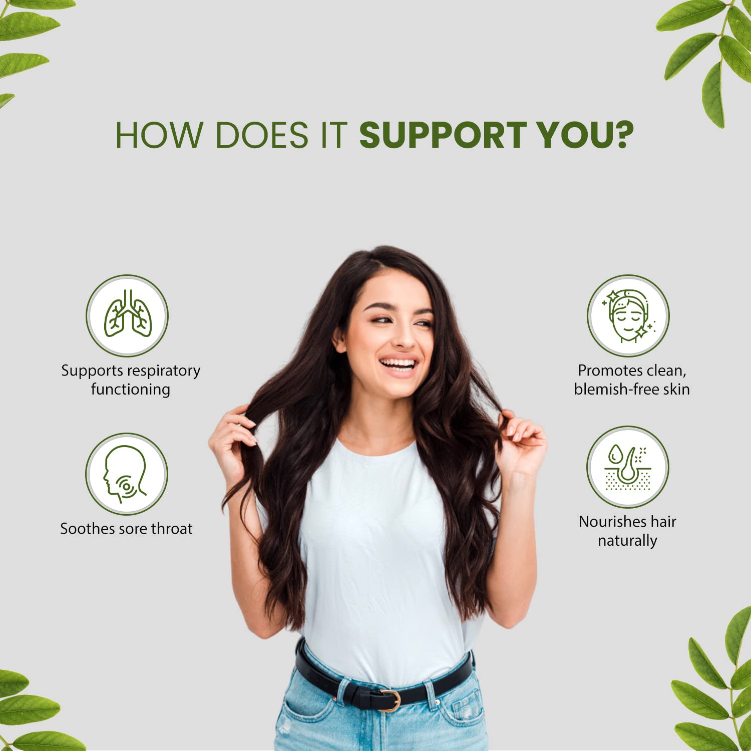 HEALTHY RESPIRATORY SYSTEM:Discourages harmful radicals & provides relief in sore throat, cough, or cold.