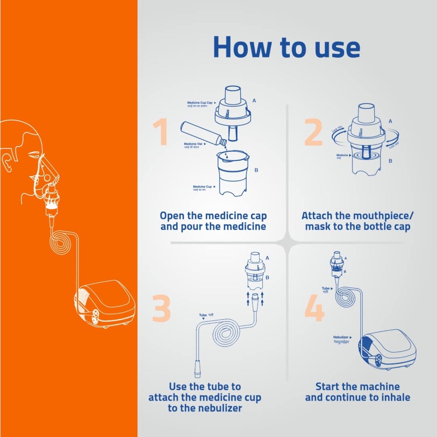 The Medtech Nebulizer has a powerful piston compressor that is meant for long time use and lasts long. The nebuliser is designed specifically to last long in Indian weather conditions.