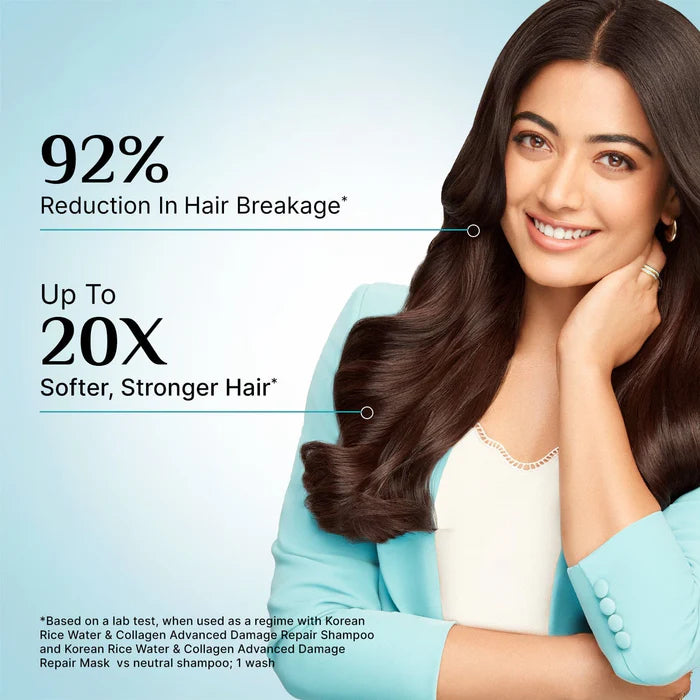 Clinically shown to reduce hair breakage by 92% and deliver up to 20× softer, stronger hair thanks to Korean Rice Water, vegan collagen, a 17‑amino‑acid complex, and ceramide blend