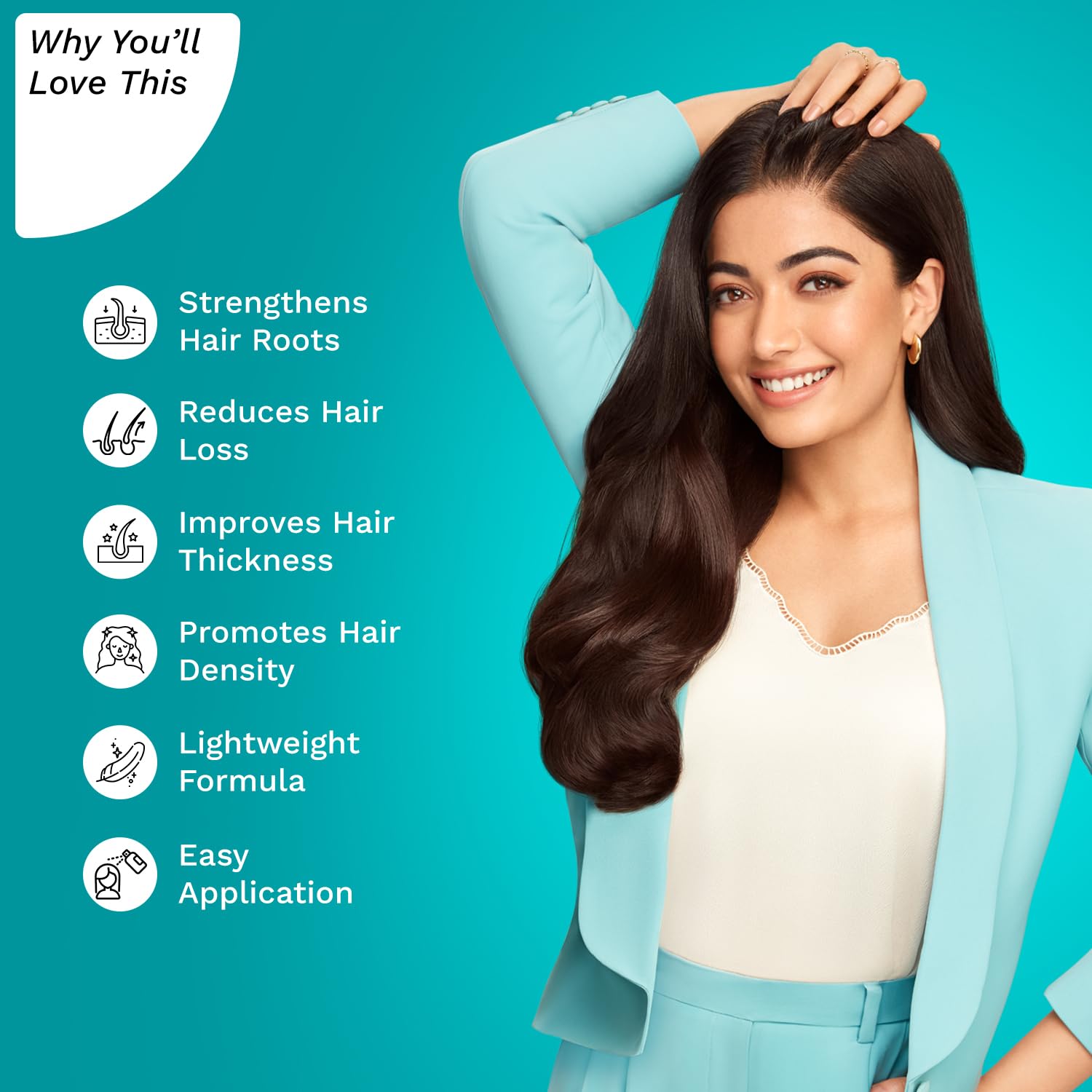 • A 30 ml spray-in serum featuring Spanish Rosemary extract (supports DHT-blocking and scalp circulation), Biotin, Saw Palmetto, Pea Sprout (Pisum Sativum) extract, Caffeine, and Niacinamide—engineered to reduce hair fall, strengthen follicles, and improve density. It belongs to Pilgrim’s proprietary RootActive™ complex.