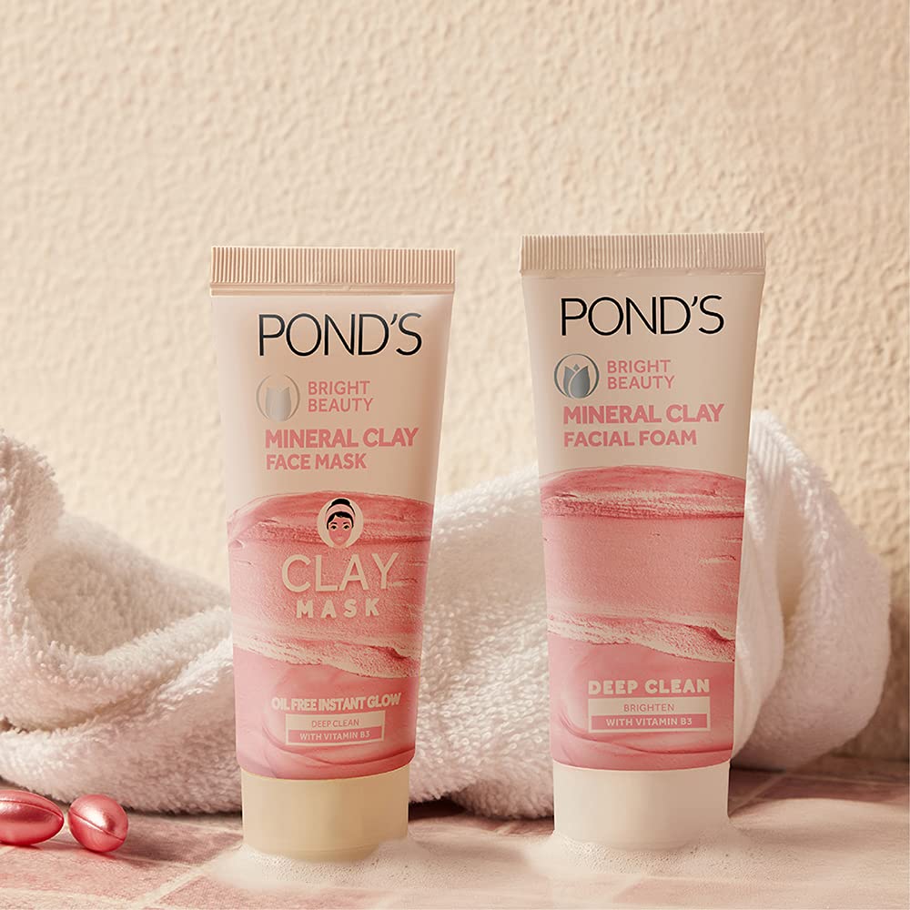 POND'S Bright Beauty Mineral Clay Facial Foam With Vitamin B3+ Oil Free Instant Glow Foam 90GM