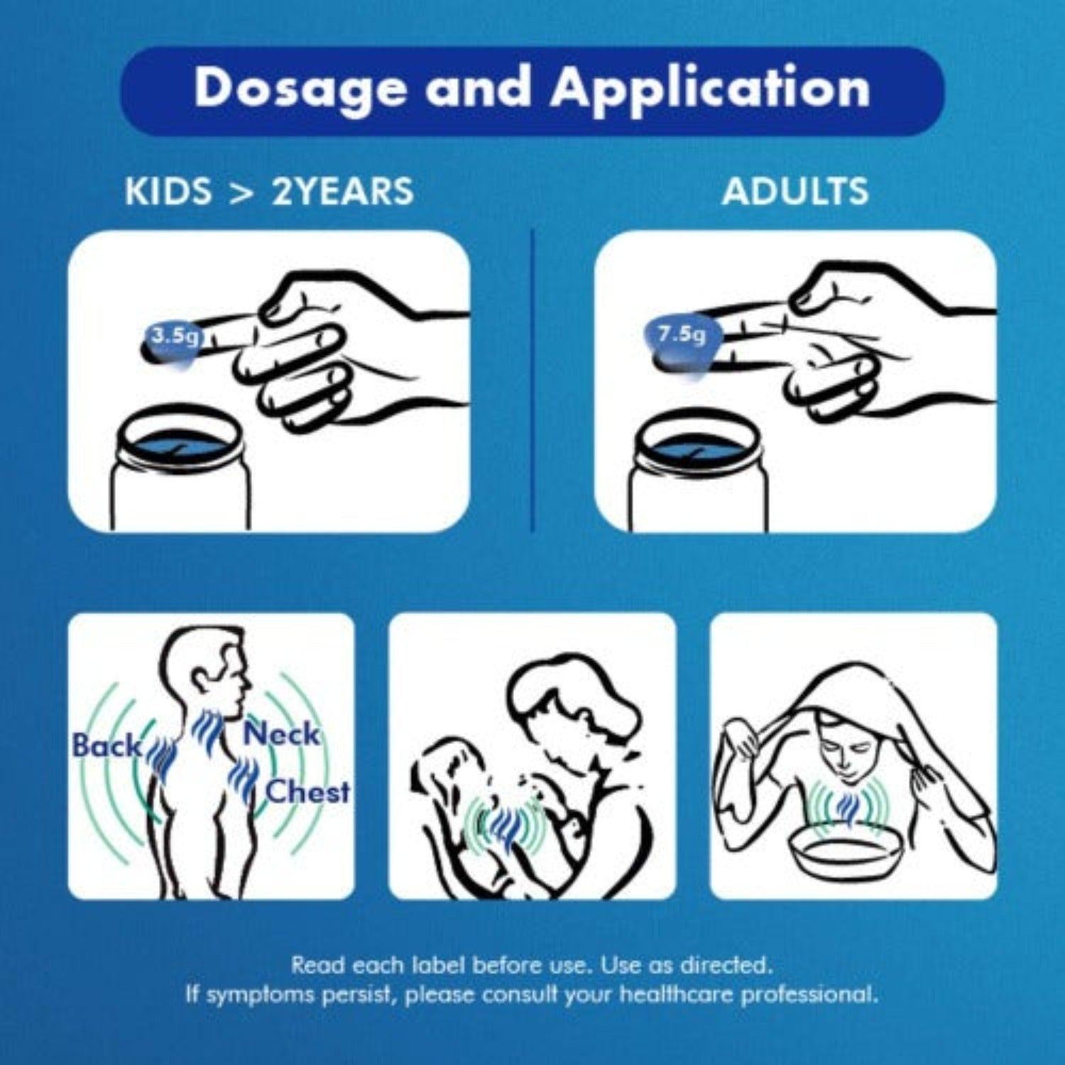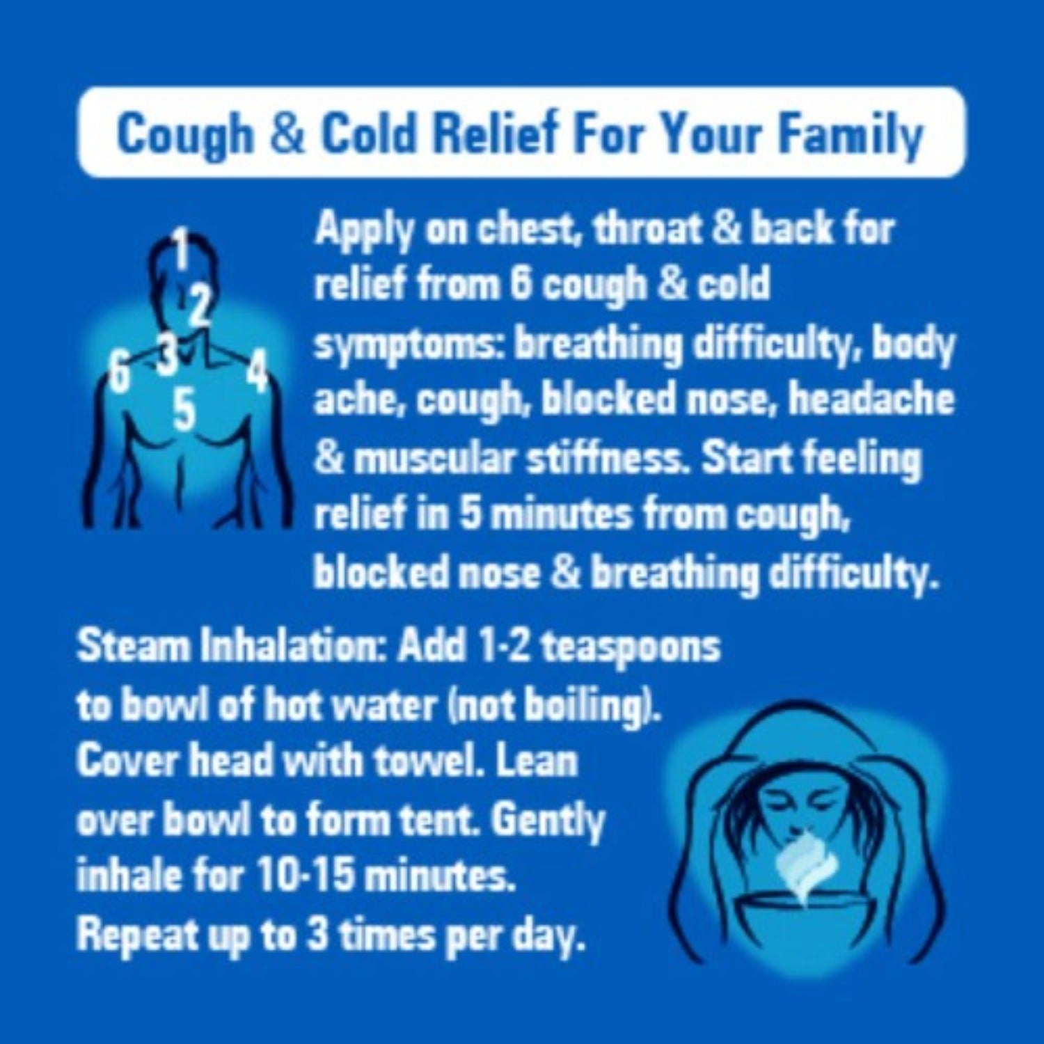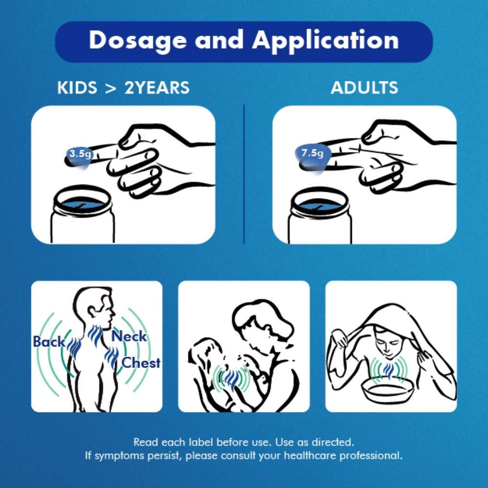 For adults and children 2 years and over: Rub a thick layer on throat and chest