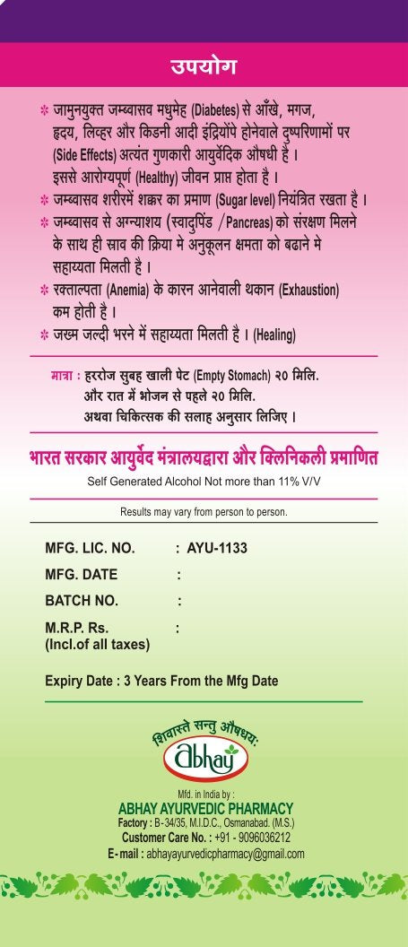 Jambavasava With Eugenia Jambolana Helps To Control Prameha Syrup 500ml