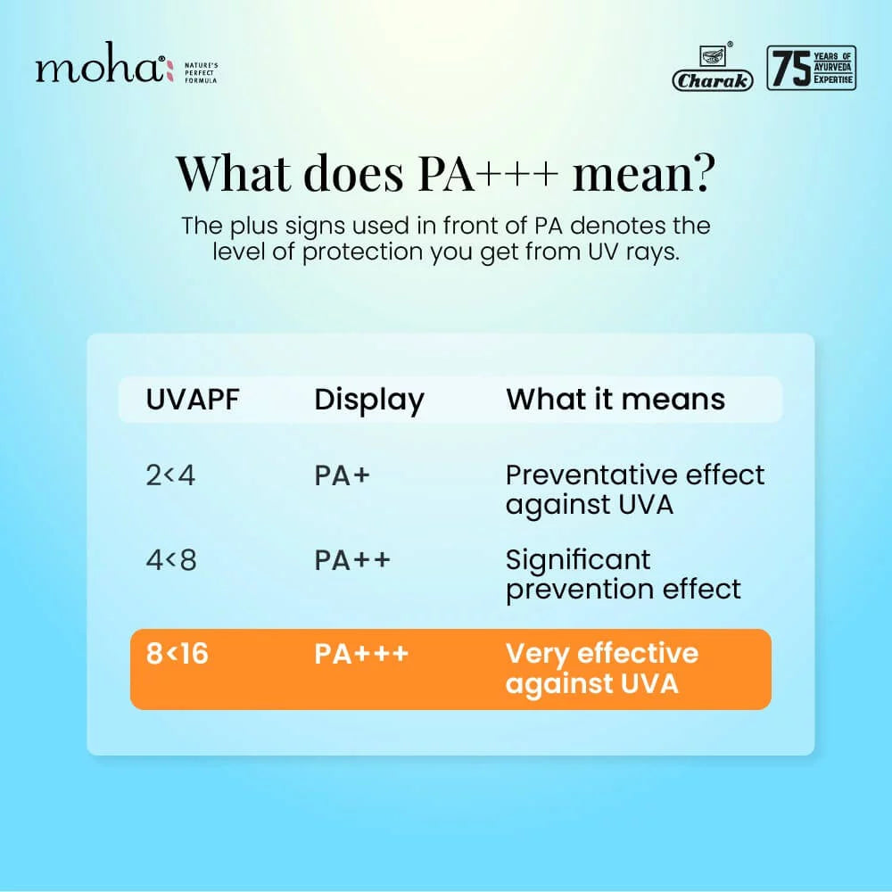 - **PA+++**: Indicates a high level of UVA protection, reducing risks of premature aging and pigmentation.