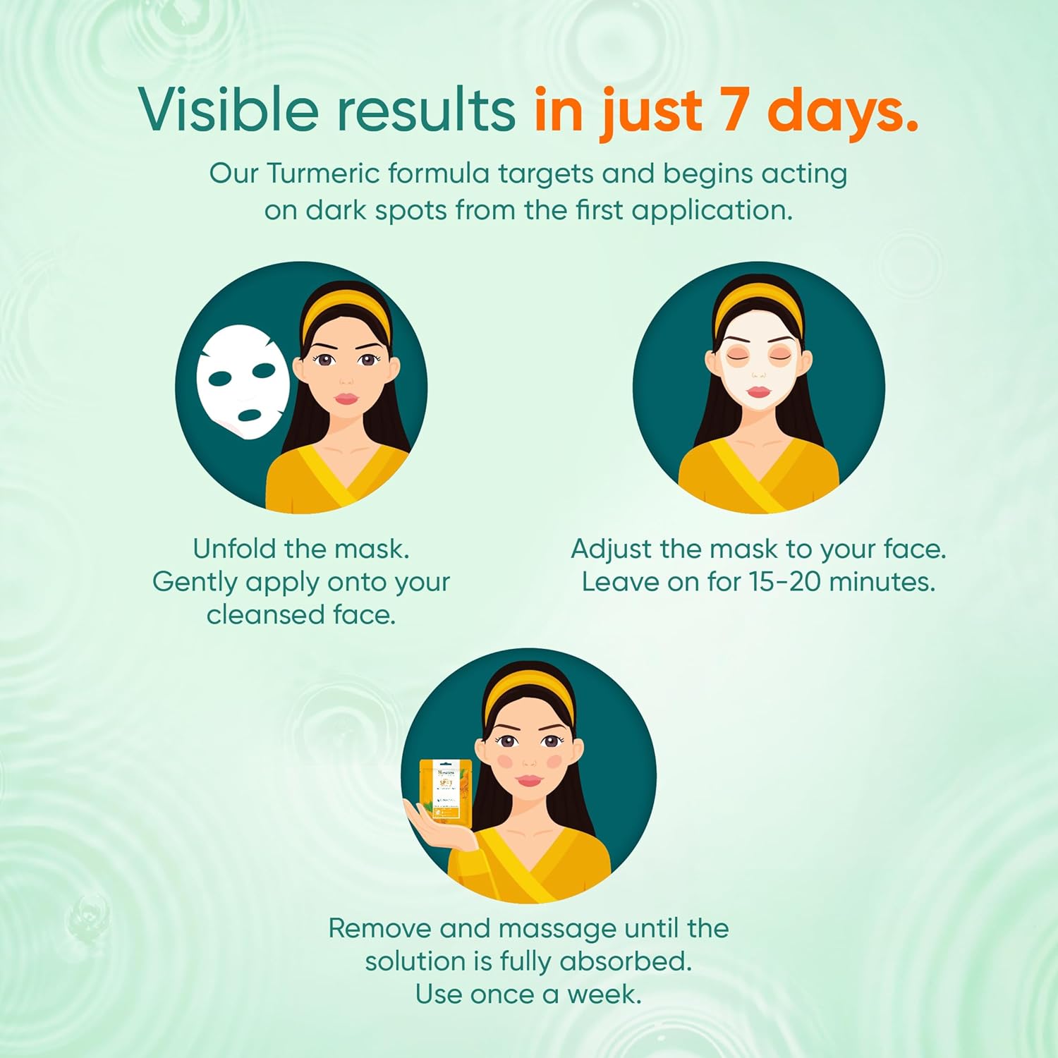 This sheet mask is powered with the cold-pressed extracts of Turmeric, Niacinamide, and Glycolic Acid, which help combat free radicals, and enhance skin hydration, making your skin visibly more clear, healthier, and more radiant.