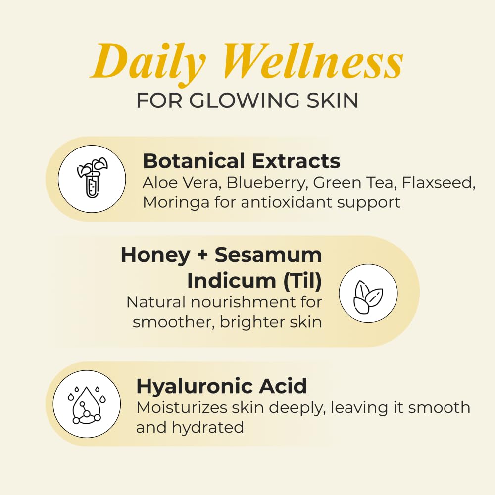 Amino acid blend 7% (Glycine, L- Proline, L- Alanine, L-Hydroxyproline, L-Arginine, L-Lysine), Rose hips extract, Aloe vera extract, Gajar (Daucus carota) powder,