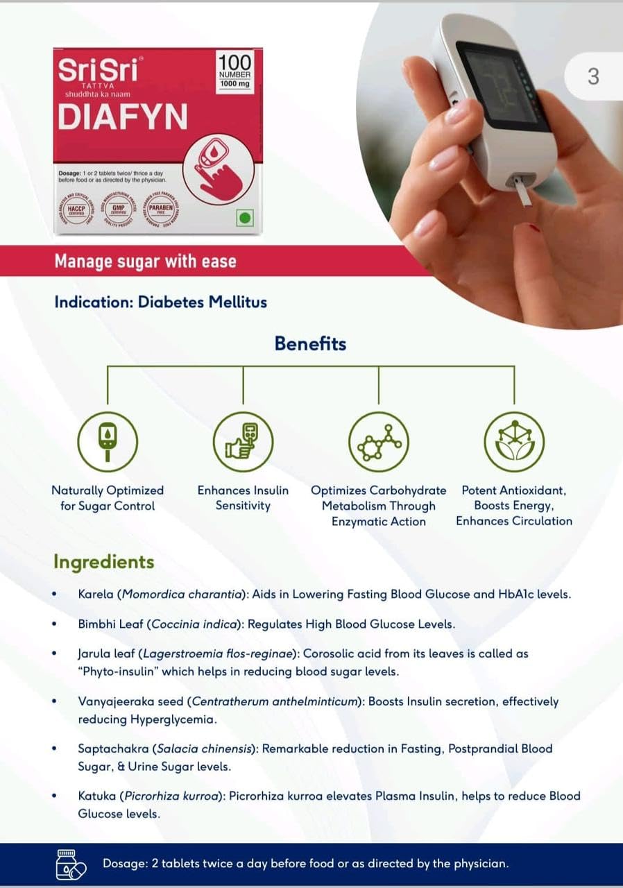 Sri Sri Tattva Ayurvedic DIAFYN For Blood Sugar Control 1000mg 100 Tablets