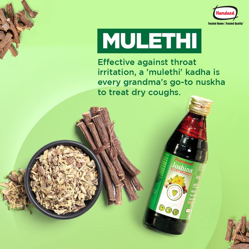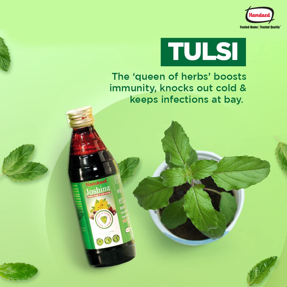 Hamdard Joshina Syrup is a natural remedy made from 12 essential herbs that aid in the prevention and reduction of common cold and cough. The all-natural, non-sedating formula helps provide relief from chest congestion, stuffiness of the nose and cough without any side effects.