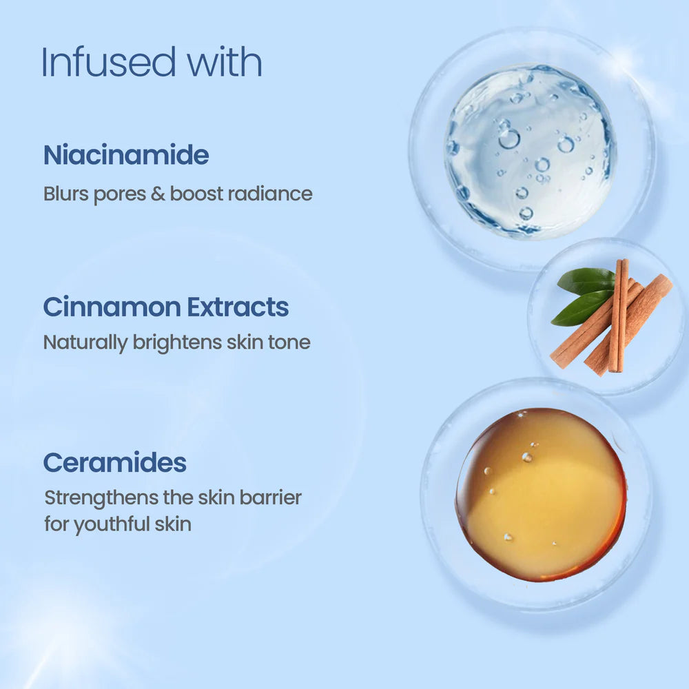 Enriched with skincare actives like niacinamide and ceramide, it provides lightweight hydration, oil-control, and a subtle complexion-enhancing tint for a matte, BB-cream-like finish.