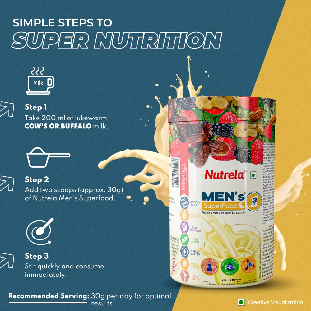 Information about Patanjali Nutrela Men's Superfood with Protein for Digestion & Immunity | Flavour Powder Vanilla
