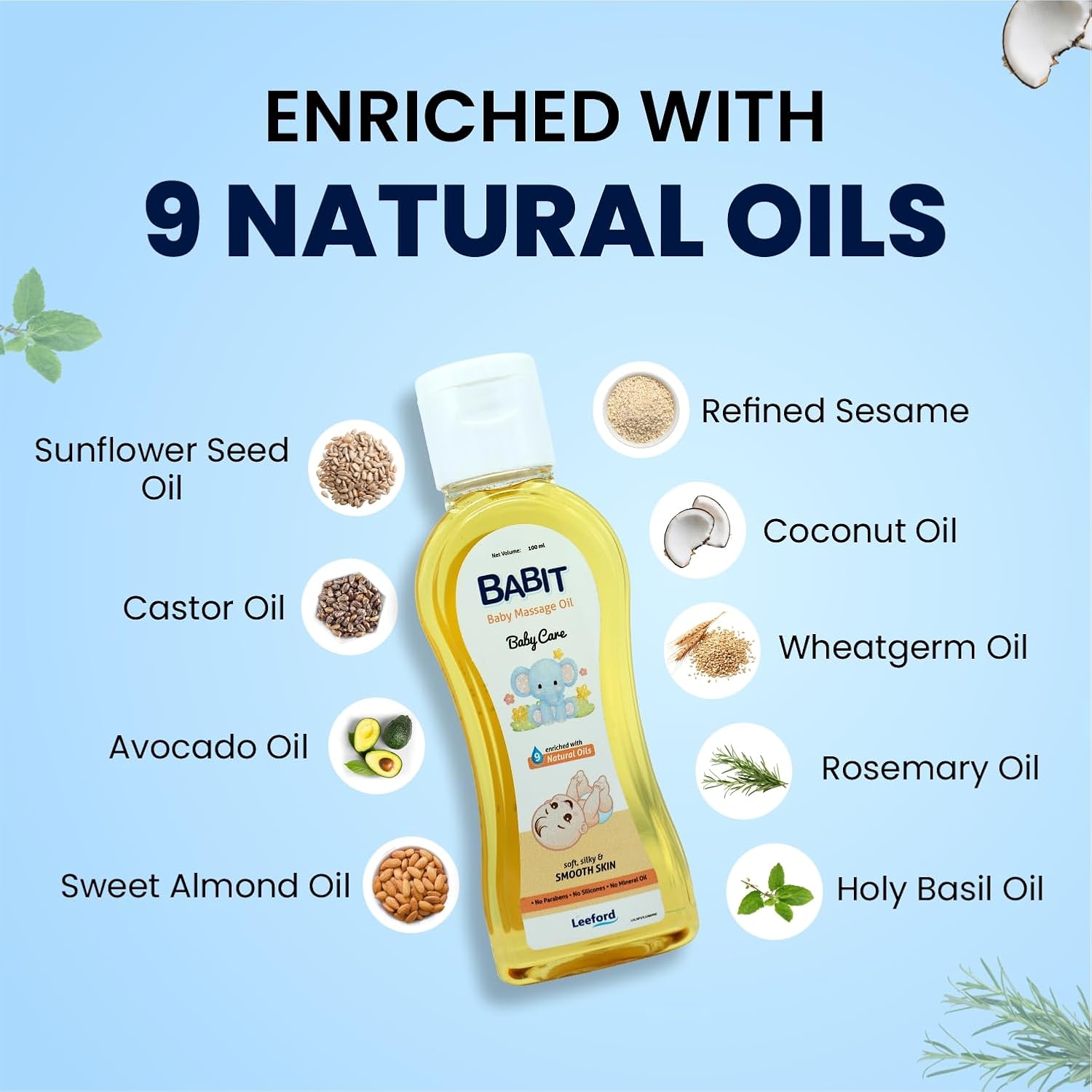 Babit Baby Massage Oil , Enriched With Natural Oils For Baby's Healthy Growth | Paraben, Silicones & Mineral Oil Free - 100ml