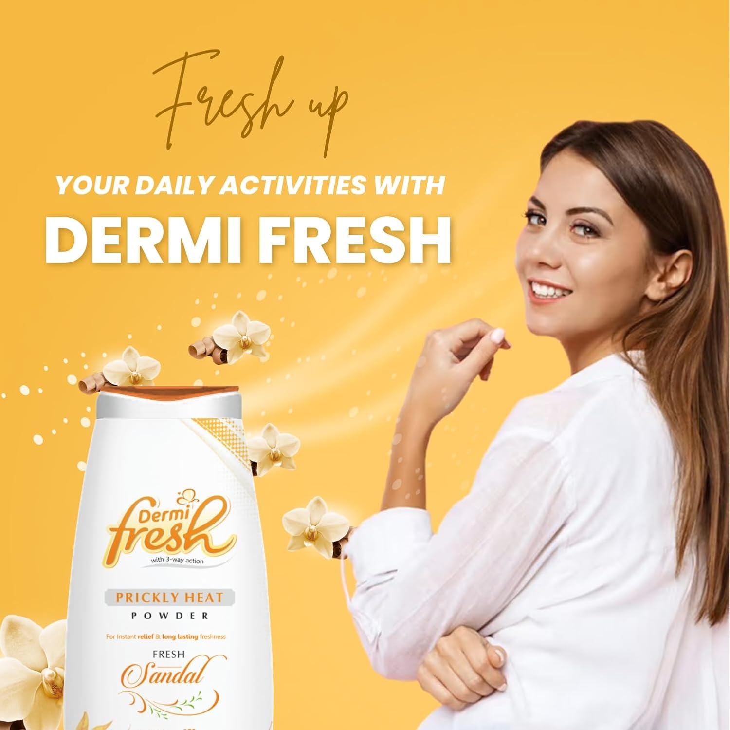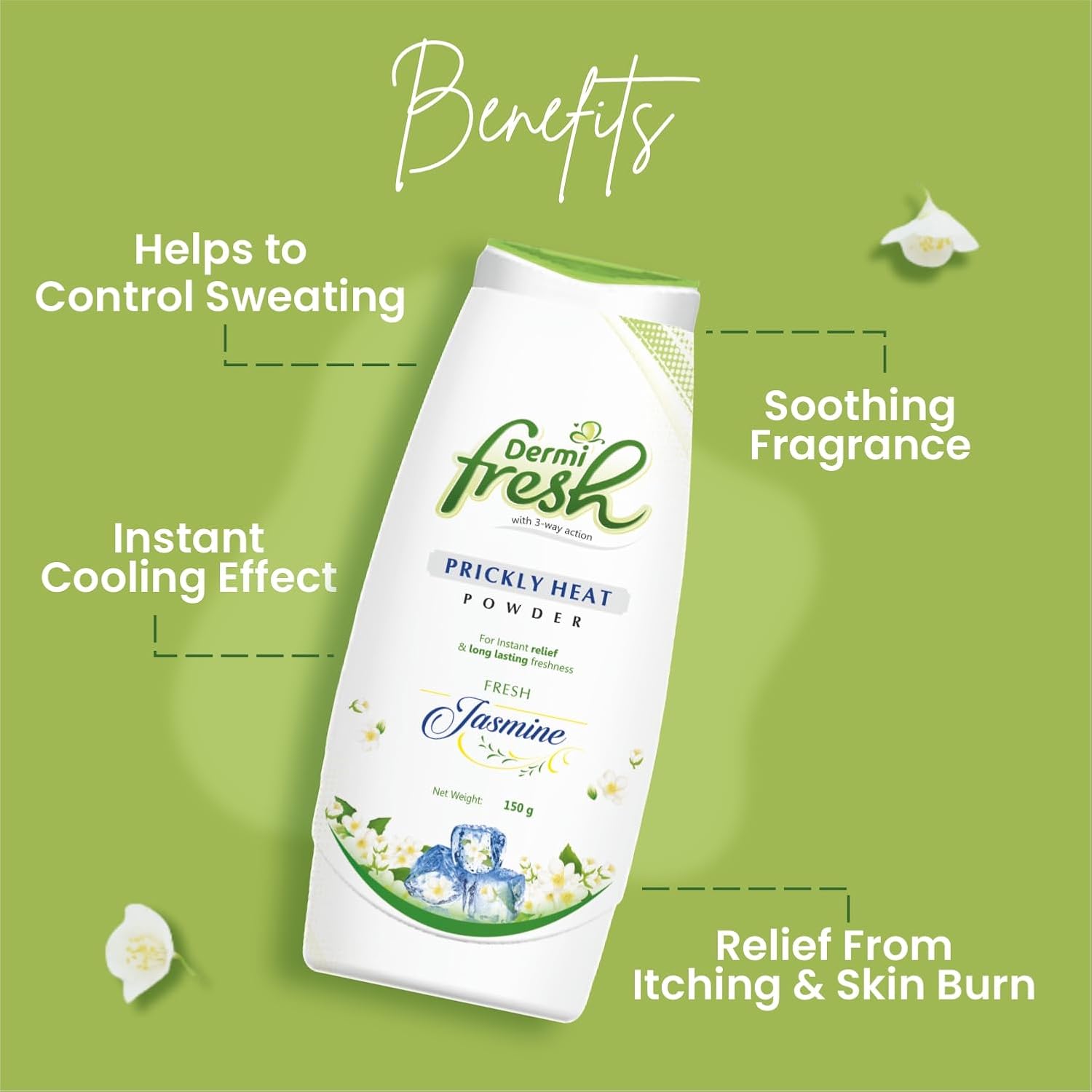 Leeford Dermi Fresh Prickly Heat Powder Jasmine,Sandal,Extra Cool,Lavender,Rose and Lemon Fragrance