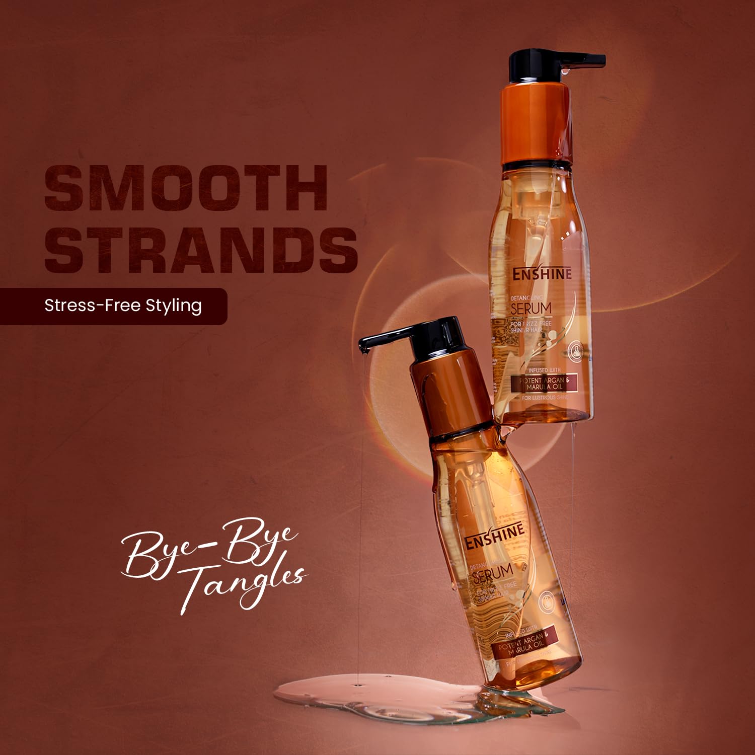 Hair Serum Application: Once your hair is clean and damp, take a few drops of Enshine Hair Serum and apply it evenly to the lengths and ends of your hair. The serum provides added protection, reduces frizz, and adds a lustrous shine. Avoid applying it to the scalp to prevent greasiness. Use the hair serum as a finishing touch for a polished look after washing your hair.