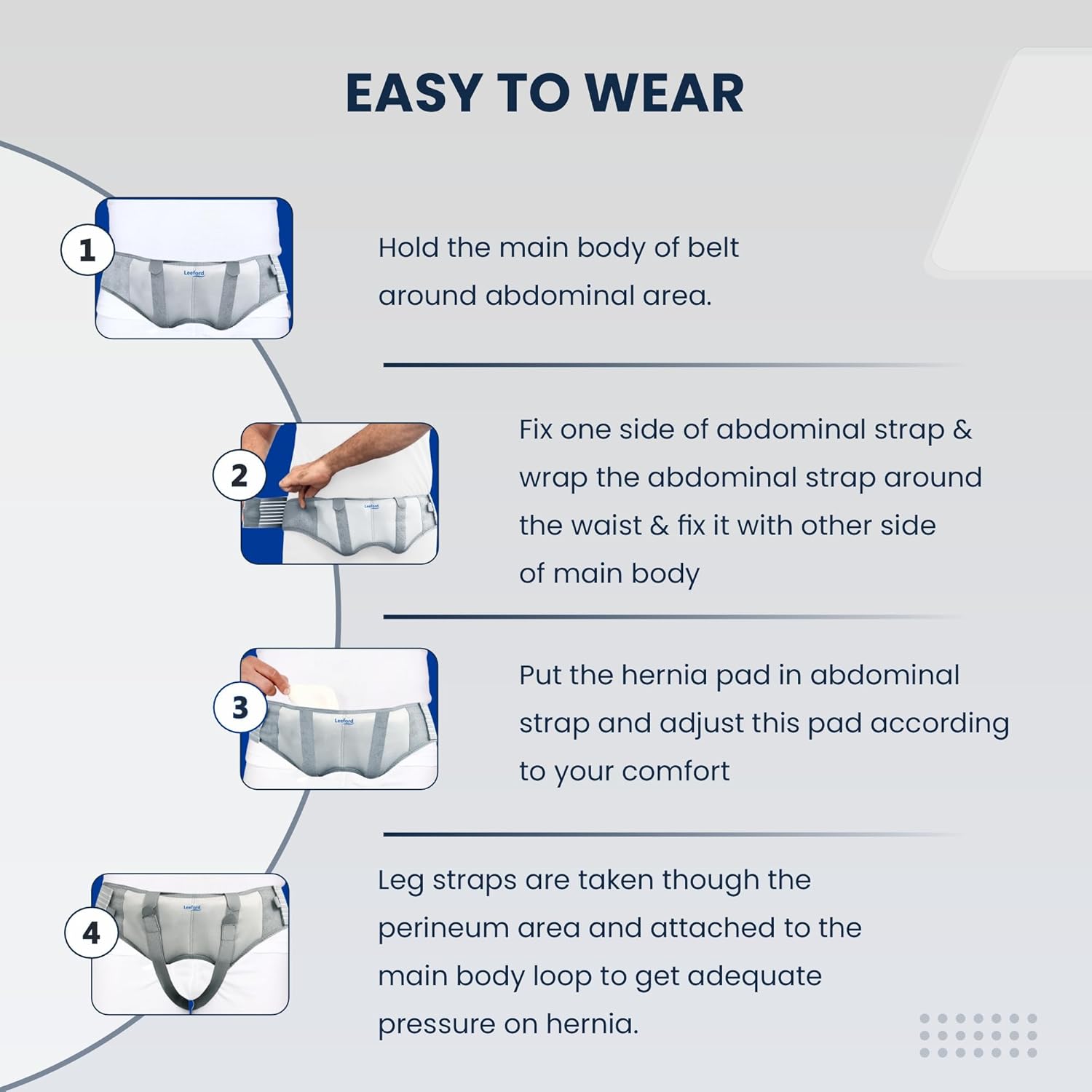 Put the hernia pad in abdominal strap and adjust this pad according to your comfort.