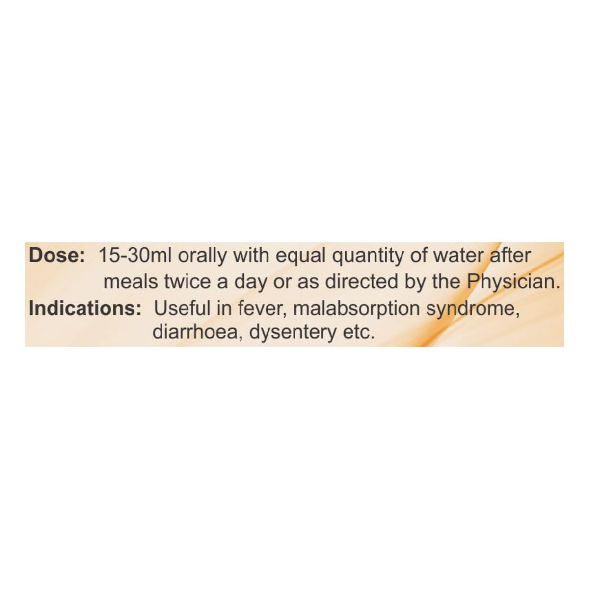 Divya Kutjarishta contains Kutaj (Holarrhenaantidysenterica), Munnaka (Vitis vinifera), Mahua (Madhucaindica), Ghambhari (Gmelinaarborea), Dhaiful (Woodfordiafruticosa) and Gudd (Jaggery) as a combination of herbal ingredients. The formulation is used for stomach and digestion related issues.