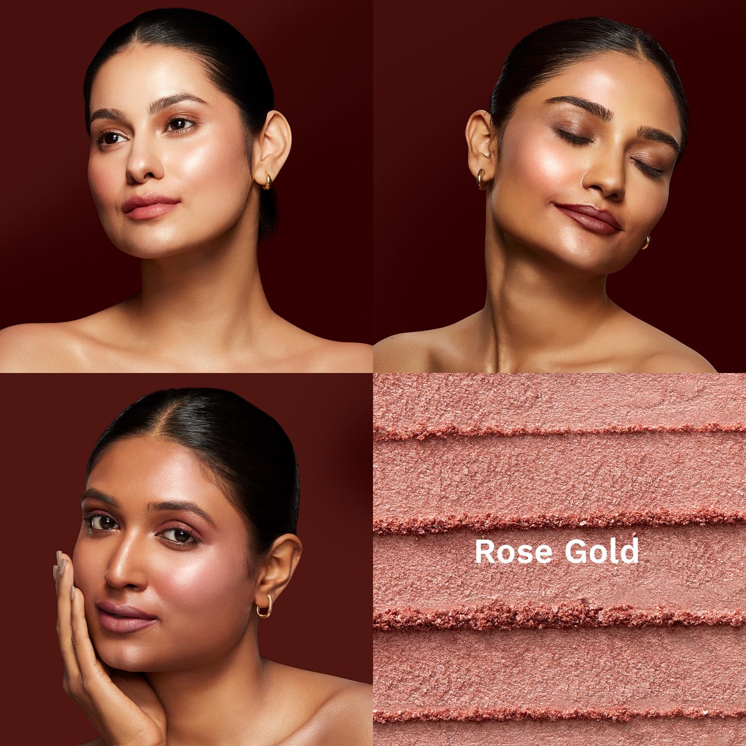 Layer shades: Use Champagne Gold for a classic highlight or add Rose Gold for a richer, pinker dimension. Blend the shades together or separately based on your skin tone