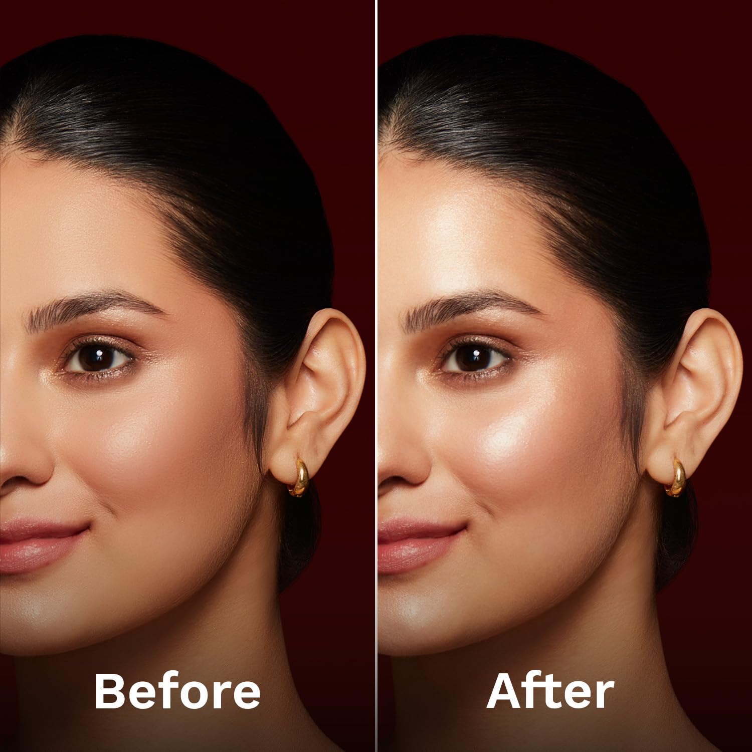 Apply using a small fan brush or fingertips to glow-prone areas: cheekbone, Cupid’s bow, inner corner of eyes, and brow bone