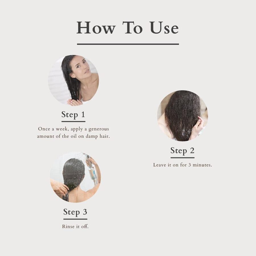 This nourishing hair oil is crafted with a cold-pressed blend of potent herbs and oils including rosemary, sesame, sunflower, amla, red onion, bhringraj, olive, and sweet almond oil. It’s designed to deeply nourish the scalp, enhance hair strength, and reduce hair fall. The formula is vegan, cruelty-free, and free from sulfates, parabens, and preservatives.