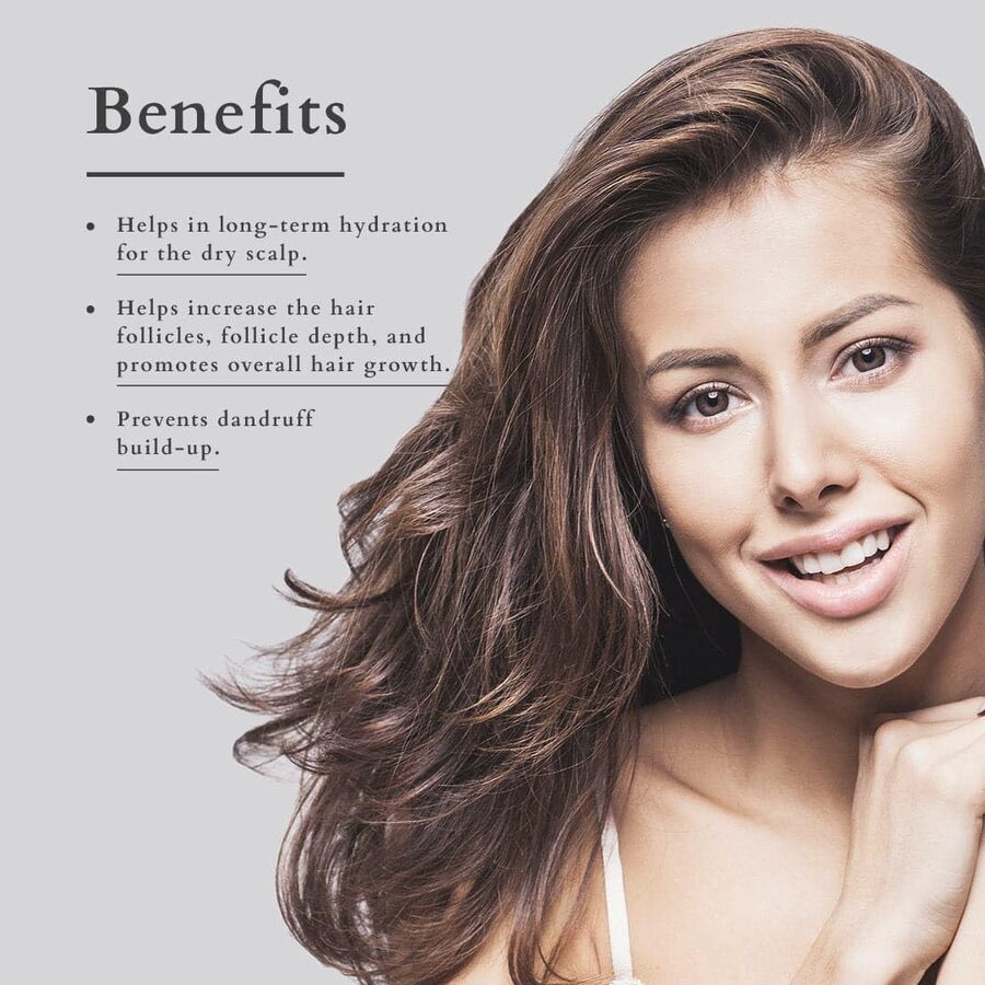 Rich herbs like red onion and bhringraj support follicle strength. |