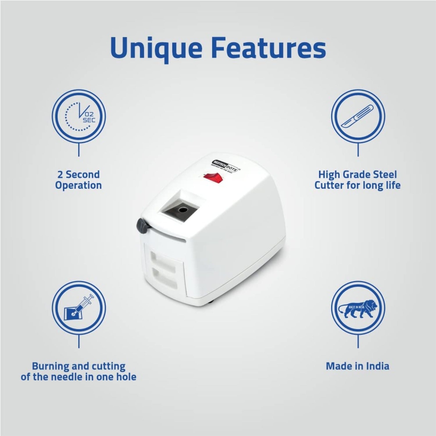 The MEDTECH Needle Burner Syringe Destroyer is the safest way to dispose off used needles.