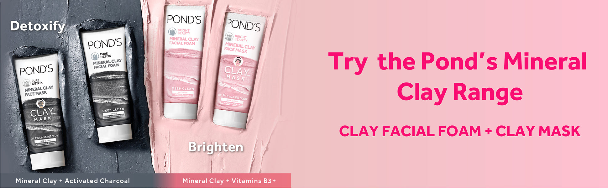 Giving your skin an oil overhaul doesn’t have to be a drag. Oil stuck in your pores is what makes your skin feel oily again after a wash! POND'S Clay Foam and Mask is the most fun way to say goodbye oil and hello to an all-day matte glow. Made with 100% natural Manicouagan clay that has 4x oil absorption power, it sucks out dirt and oil stuck deep within your pores. What’s left behind? Skin that’s glowing and matte all day long! POND'S Clay Foam and Mask are the most enjoyable and effective way to keep your skin oil-free for longer. Revolutionise face washing with the enriching power of Mineral Clay. One of the most efficacious ingredients in deep cleansing. Its enriched with skin-loving minerals to give you a oil free glow. So, step up your deep cleansing regimen for a Oil-Free glow. The clay range comes in two exciting formats. The POND'S Bright Beauty mineral clay foam and mask brightens and smoothens your skin! Combined with Vitamin B3+ technology, it stimulates the appearance of millions of pristine skin cells to reveal your bright true shade. The POND'S pure white mineral clay foam is enriched with activated charcoal which gently exfoliates and removes dead cells. Detoxes your skin for a oil-free glow!