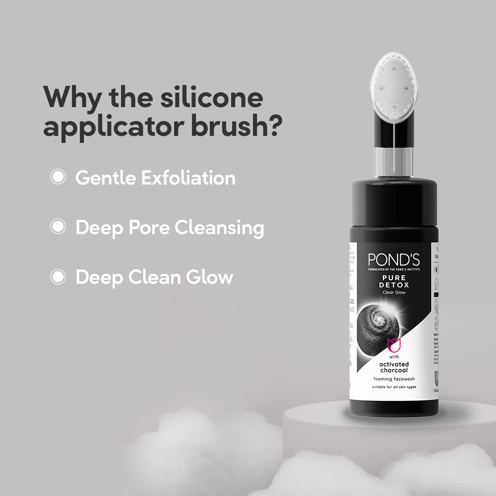 Charged with Activated Charcoal, POND'S Pure Detox Foaming Facewash’s creamy foam texture is a unique combination that is gentle on the skin but harsh on the dirt. For easy, mess-free application, it also comes with a built-in deep cleaning silicone brush that helps you exfoliate and remove dirt and impurities while cleansing your pores from deep within, giving your skin a fresh glow like never before!