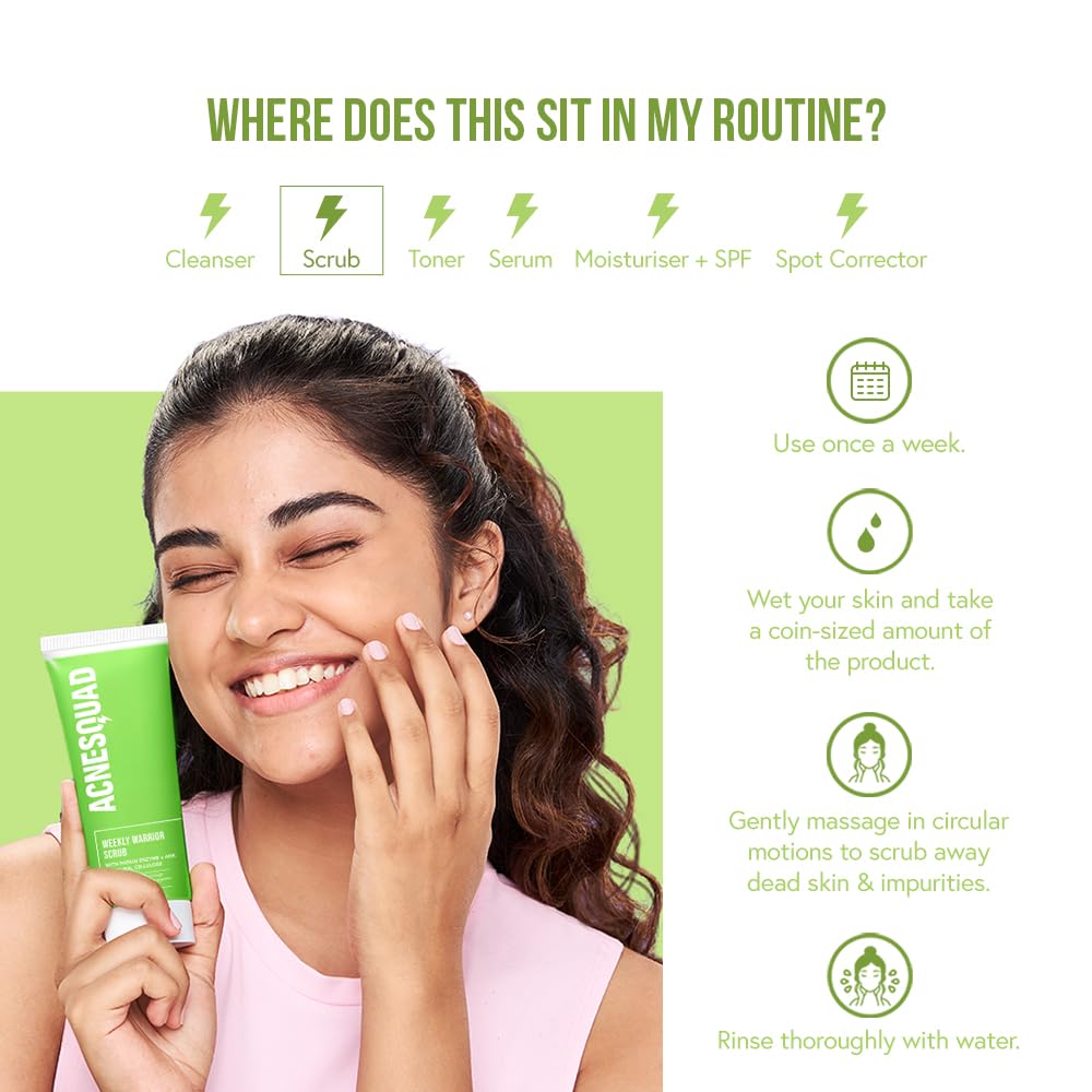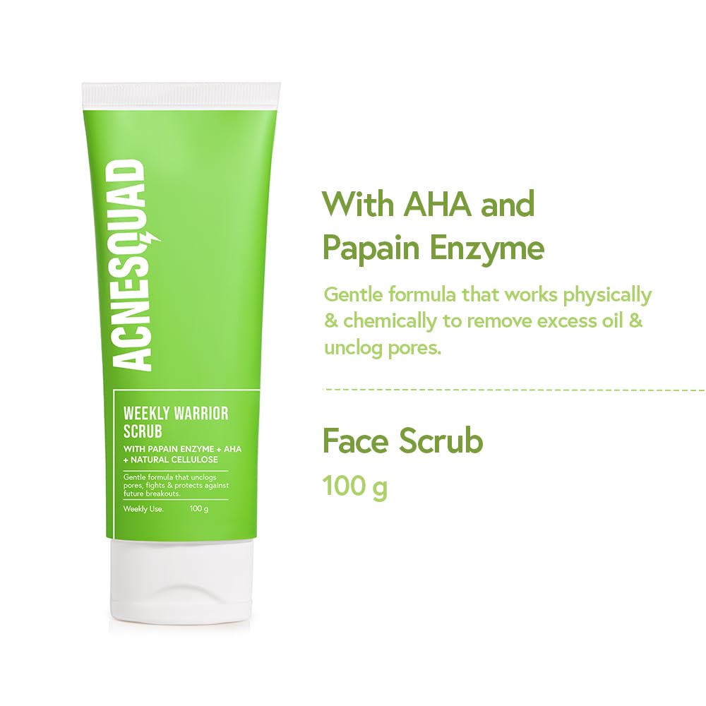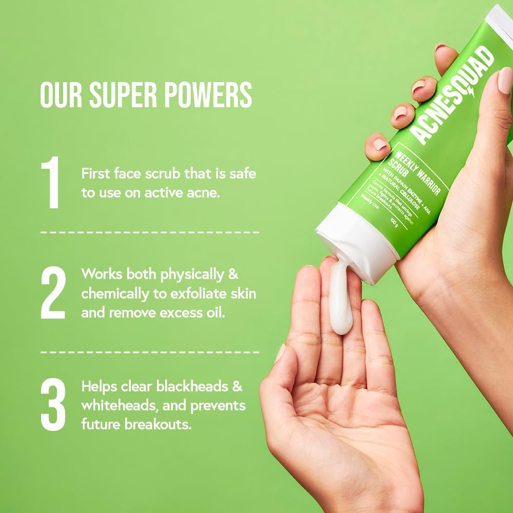 Acne Squad Weekly Warrior Scrub With Papain Enzyme + AHA + Natural Cellulose Cream 100g