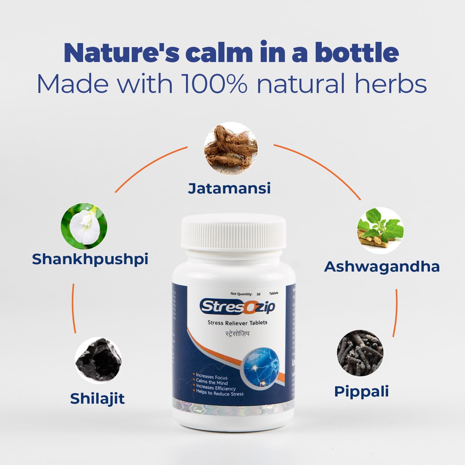 This product is formulated with natural ingredients such as ashwagandha, shankhpushpi, jatamansi, pippali, and shilajit. It is designed to promote relaxation of both the body and mind, potentially alleviating symptoms associated with stress and anxiety. It is claimed to be effective and beneficial for brain functions. The product is asserted to be free from side effects. In situations of disrupted sleep, it is suggested that the product may improve sleep patterns. Additionally, it is purported to help reduce daily stress and anxiety.