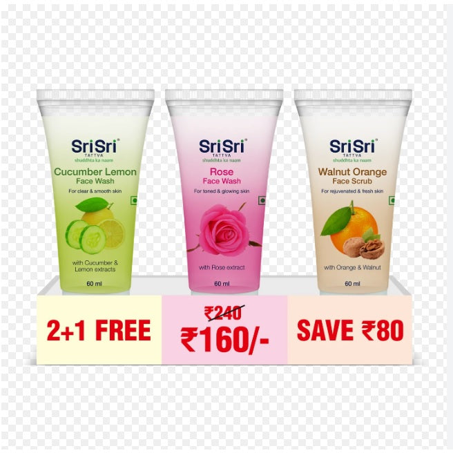 Sri Sri Tattva Cucumber,Rose Face wash & Walnut Orange Face Scrub Free Hydrating Combo